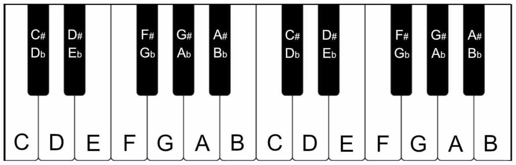 For example, C# and Db are the same key on the piano—they just have different names depending on how the music is written. This happens with all sharps and flats. While you don’t need to know this to read sheet music, it’s good to know.